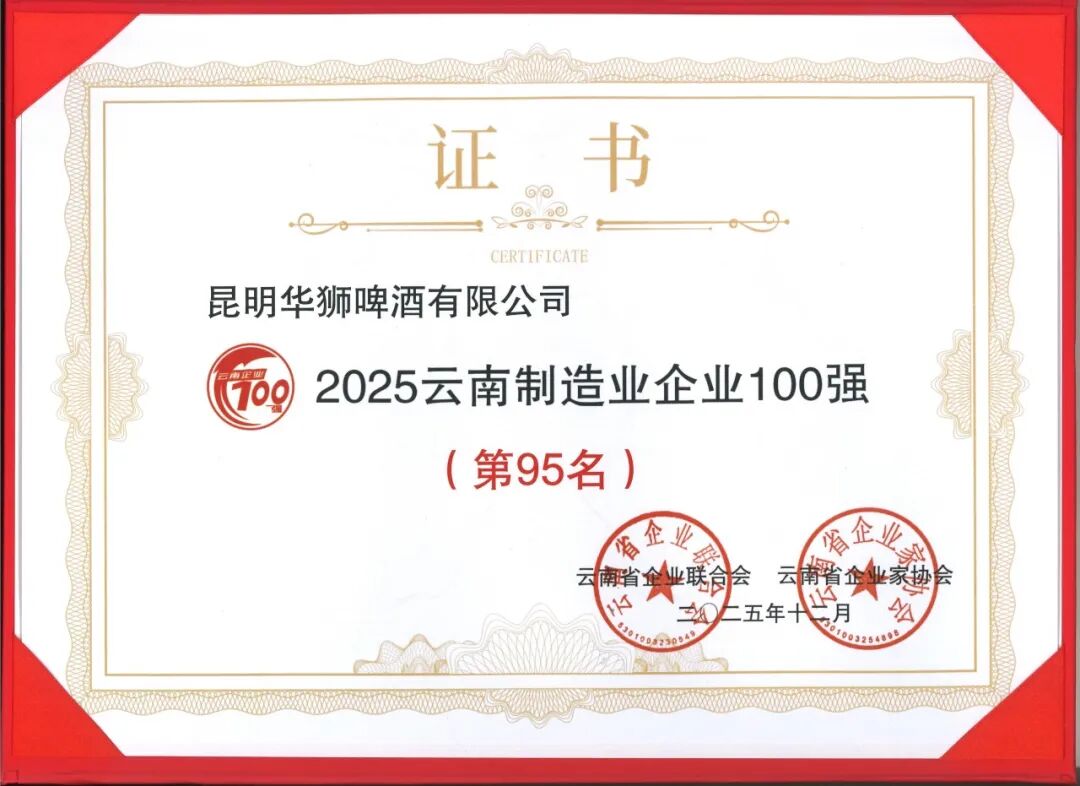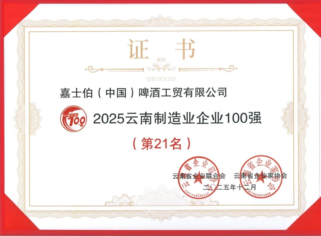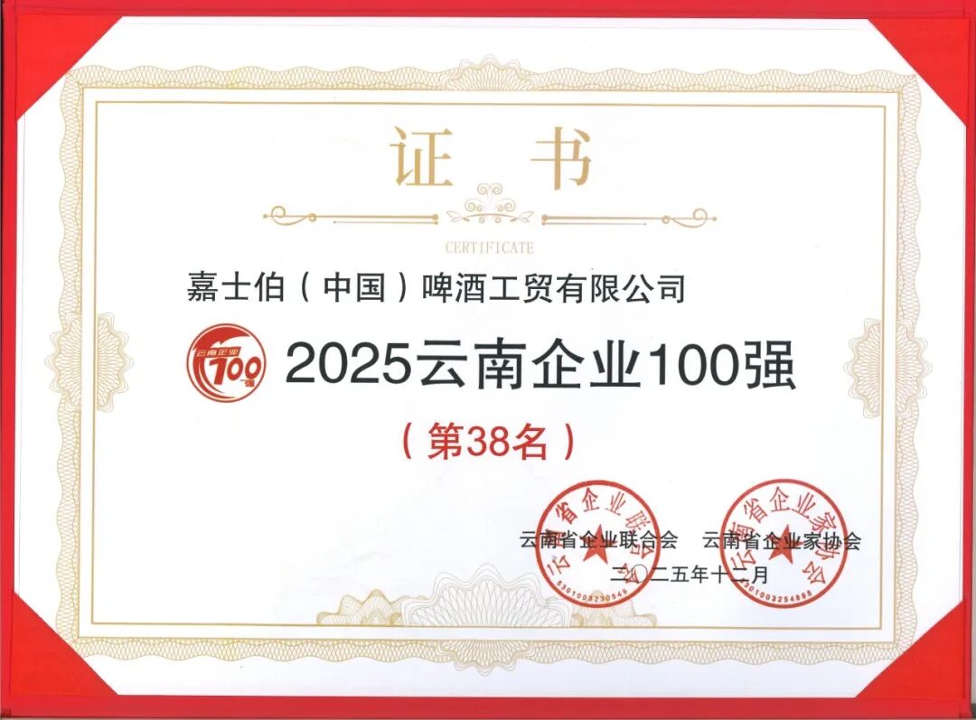 12月6日,云南省企业联合会、云南省企业家协会联合发布“2025云南省企业100强”榜单。嘉士伯中国两家在滇企业——嘉士伯(中国)啤酒工贸有限公司与昆明华狮啤酒有限公司双双上榜,使得嘉士伯中国成为唯一一家旗下有两家企业同时入选该榜单的啤酒公司。