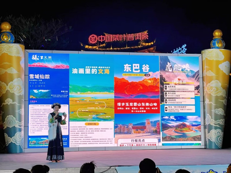 推介环节精彩纷呈,两地文旅资源集中亮相并精彩碰撞。丽江方面,生动展示了从古城风情到雪山壮阔、从泸沽湖诗意到民族文化的多元魅力,并由三家旅行社现场发布多条定制游、一日游线路产品,为普洱游客提供多元化选择。普洱则以“左手咖啡右手茶”为核心主题,全方位呈现文旅秘境:世界文化遗产景迈山古茶林的千年积淀、26个民族的斑斓文化风情,加之“航空+铁路+公路”立体交通网络的便捷加持,让普洱成为备受青睐的旅居康养胜地。