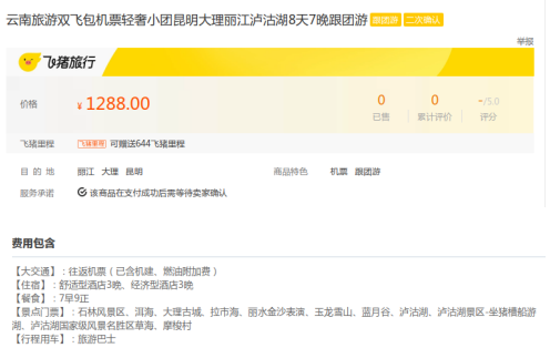 该旅游产品广告链接:云南旅游双飞包机票轻奢小团昆明大理丽江泸沽湖8天7晚跟团游
