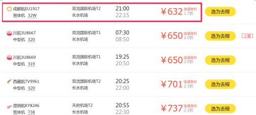 从行程看,四川成都至昆明出发时查询的往返机票价格最低为632元。