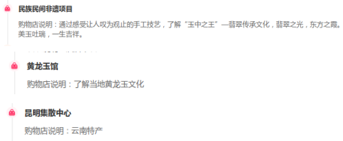2025年12月10日,监测到标题为“云南旅游双飞包机票轻奢小团昆明大理丽江泸沽湖8天7晚跟团游”的旅游产品,涉及“民族民间非遗项目、黄龙玉馆、昆明集散中心”三个购物点。