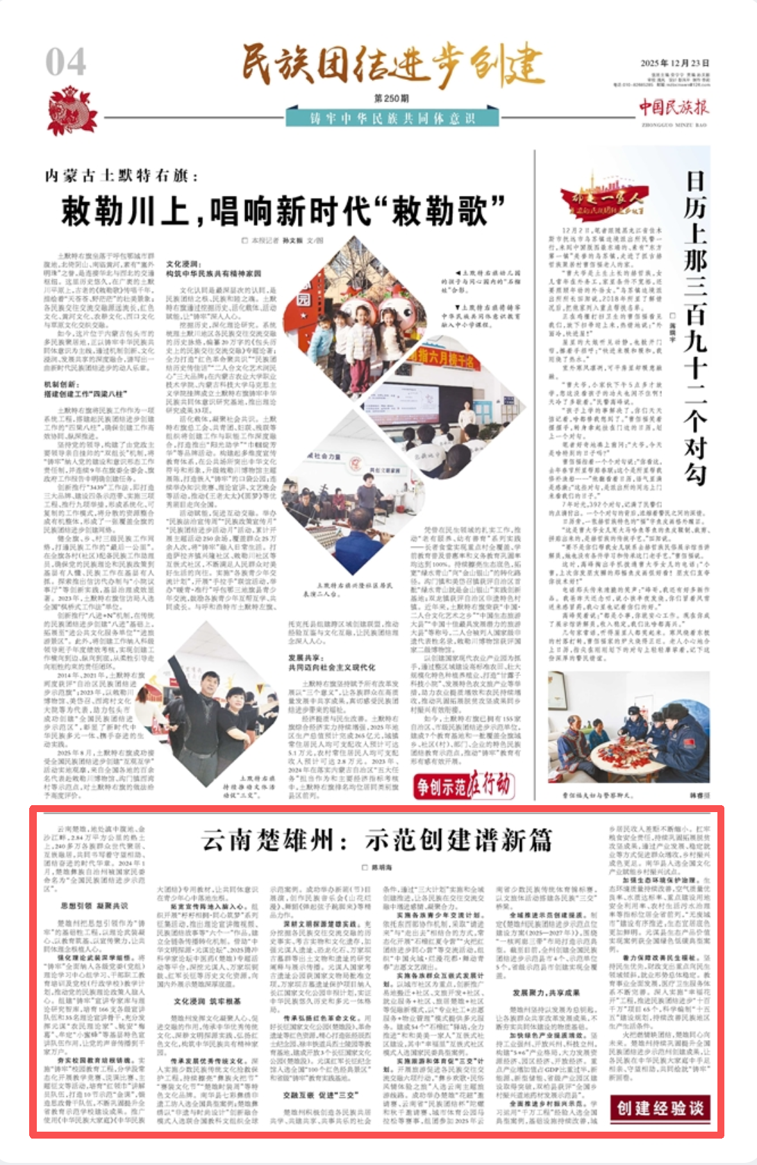 《中国民族报》民族团结进步创建版刊登文章