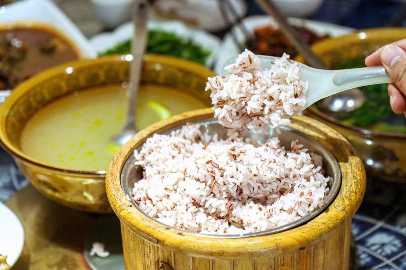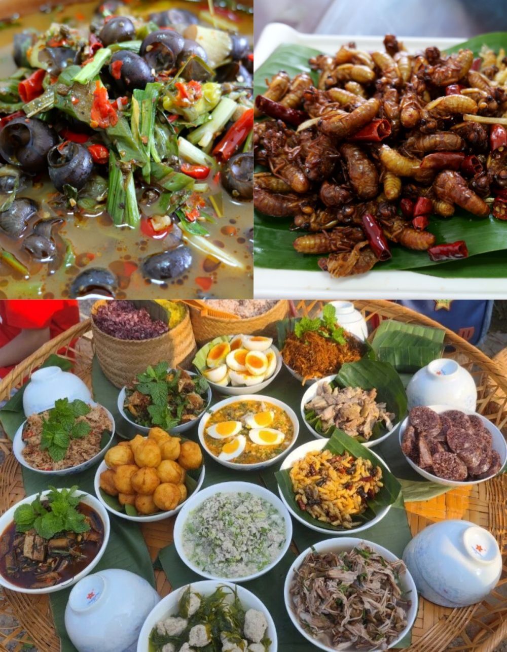 哈尼族美食琳琅满目,哈尼蘸水鸡、豆豉煮泥鳅、腊猪脚、咸鸭蛋、稻花鱼、凉拌魔芋树花等都是哈尼人招待来客的必备佳肴。