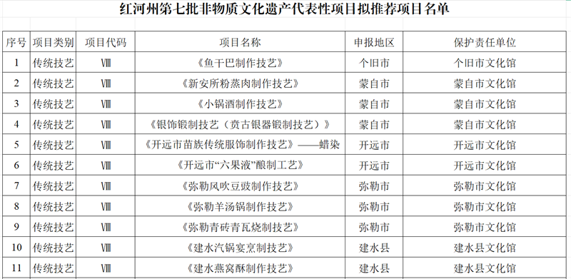 关于红河州第七批州级非物质文化遗产代表性项目拟推荐项目名单的公示