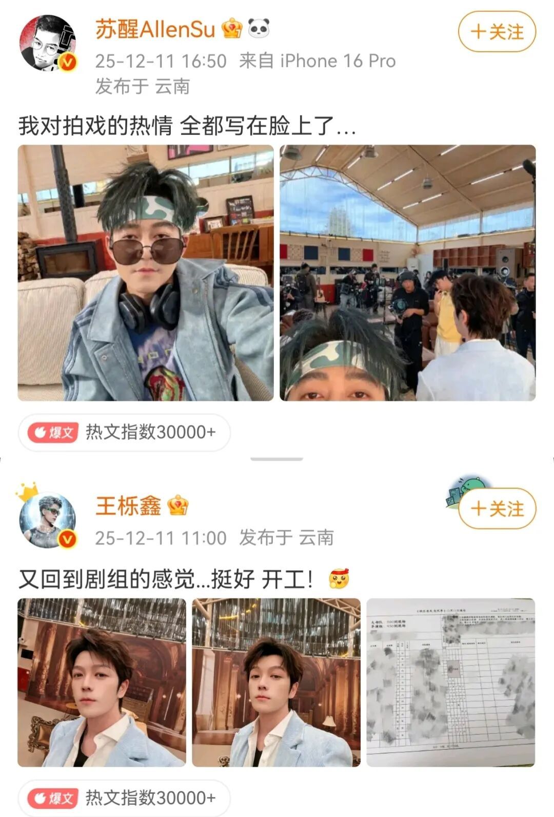 王栎鑫也按捺不住在社交平台上分享道:“又回到剧组的感觉…挺好,开工!”还配上了一张“通告单”,网友惊叹道“厚米团要拍短剧了吗!”整活对于哥哥们可是手拿把掐,好像已经能看到兄弟们熟人演戏的幽默画面了~