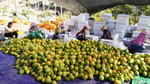 群众正在分拣成熟的芒果