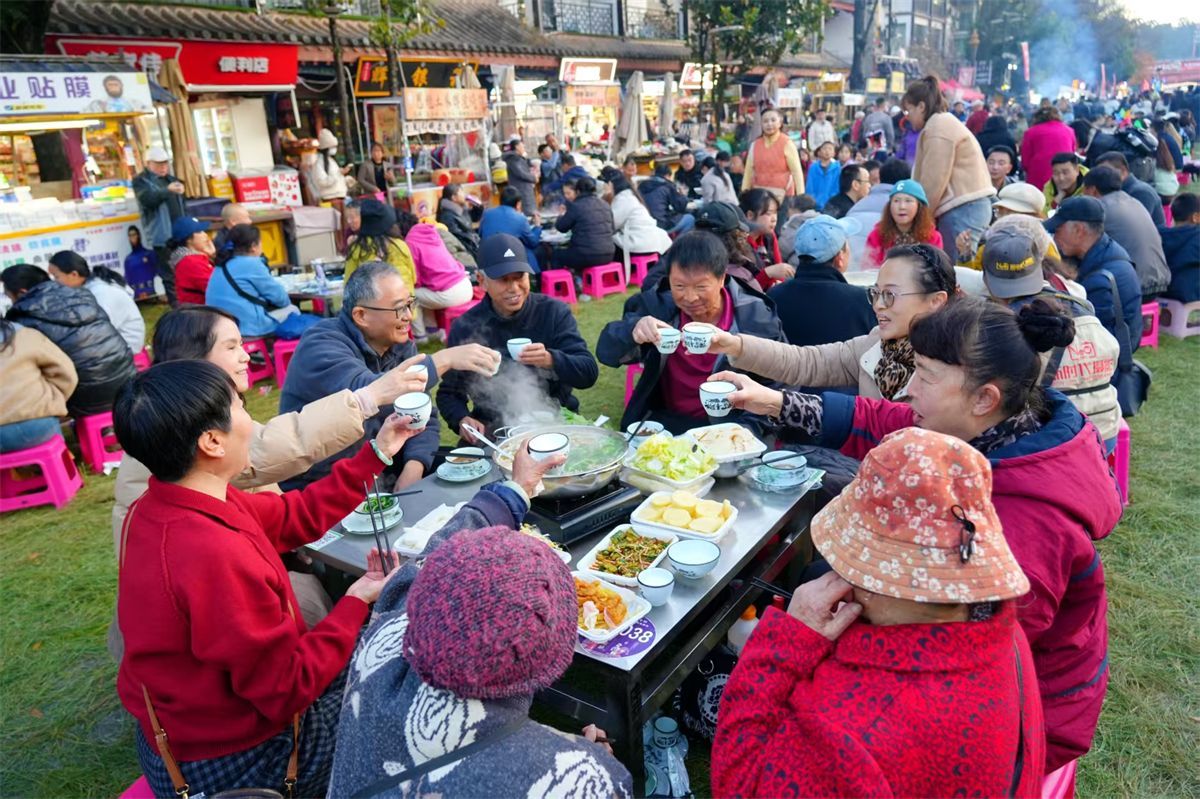 人们比邻而坐,不分地域你我,谈笑声、祝福声与碗筷叮当声交织,在一筷一勺、一饮一啄间,品味最纯粹的年味儿,也感受着彝族饮食文化的独特魅力。