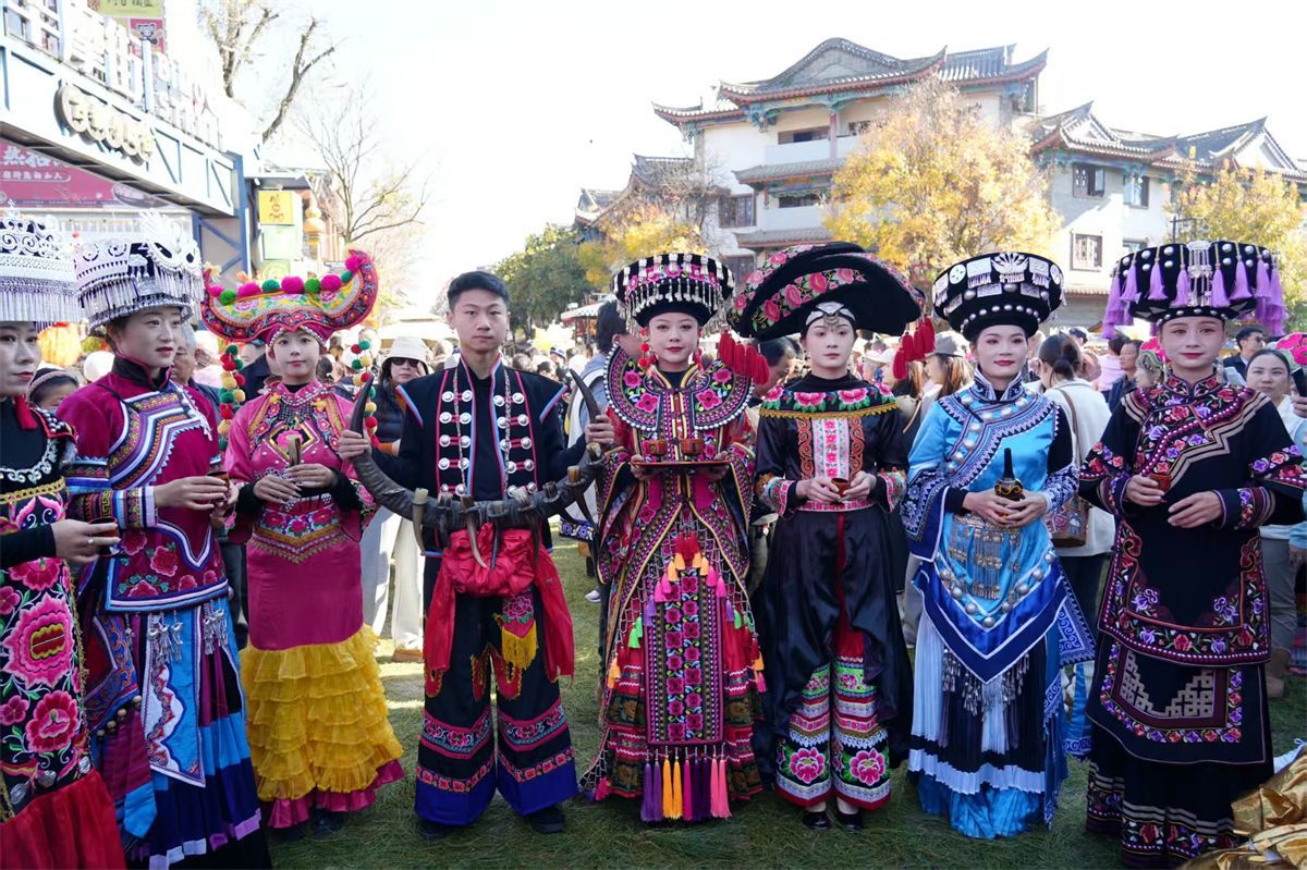 踏入彝人古镇,彝族同胞的诚挚欢迎扑面而来。一场原汁原味的迎宾仪式率先送上“楚雄温度”:身着绚丽民族服饰的彝族儿女载歌载舞,以灿烂的笑容和欢快的歌舞点燃全场节日情绪,让每一位远道而来的客人都深切感受到楚雄人民的热情豪爽,瞬间融入喜庆氛围。