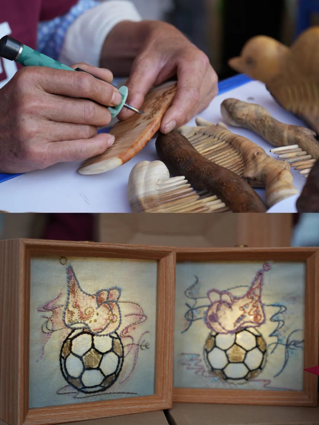 在红河风物市集上,淘一把紫陶壶、尝一块弥勒卤鸡、品一杯绿春白茶,非遗匠人雕刻的木梳、寓意丰富的剪纸、精致可爱的扎染、色彩鲜艳的彝族刺绣……琳琅满目的红河非遗,每一件都令人爱不释手。