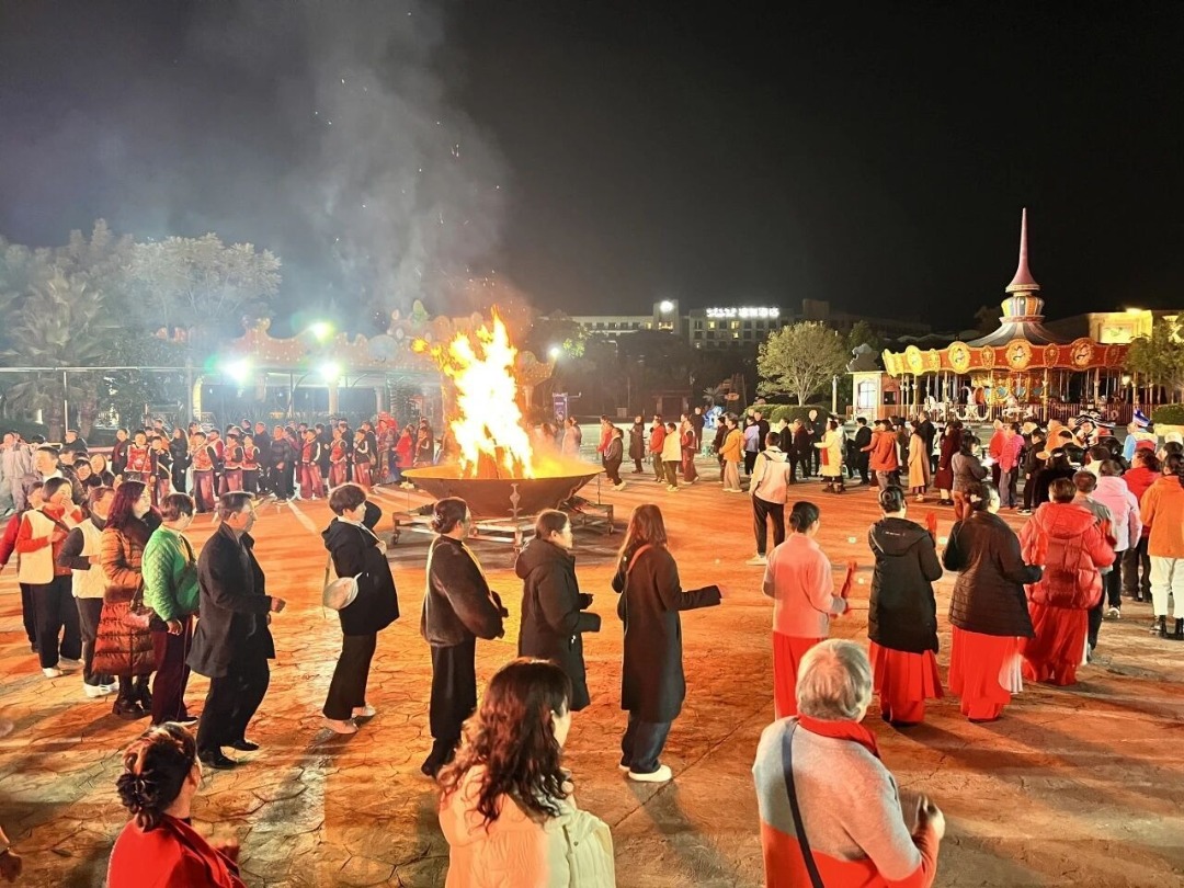 武定狮子山景区也迎来旅游热潮,数千名游客登高赏景,参与彝族年特色活动,领略“罗婺故里”的人文魅力。“我们特地从四川自驾来过彝族年,这里活动丰富又独特,长街宴和篝火晚会格外有感染力。”一位成都游客开心地说道。