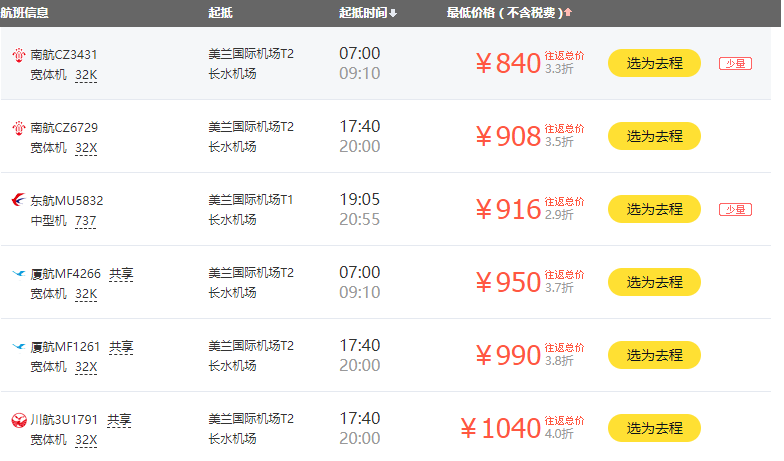 从行程看,海口至昆明出发时查询的往返机票价格最低为840元。