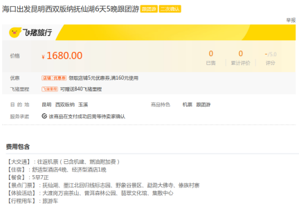 该旅游产品广告链接:海口出发昆明西双版纳抚仙湖6天5晚跟团游