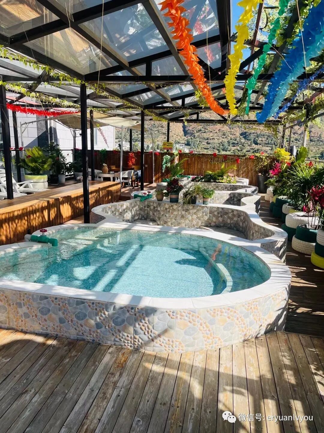 下山口温泉休闲度假小镇位于洱源县右所镇下山口村,小镇上温泉度假酒店林立,天然温泉水富含偏硅酸、锶、钙等多种元素。下山口温泉小镇历史悠久、温泉汤池种类众多,价格实惠。沐浴在仿佛仙境一般的温泉里,当热气腾腾的水流拥抱着你,在水汽氤氲中,忘却喧嚣,身心与大自然交融,所有的烦恼都被抛到脑后。偷得浮生半日闲,无忧无虑泡温泉,也是一种难得的享受吧!