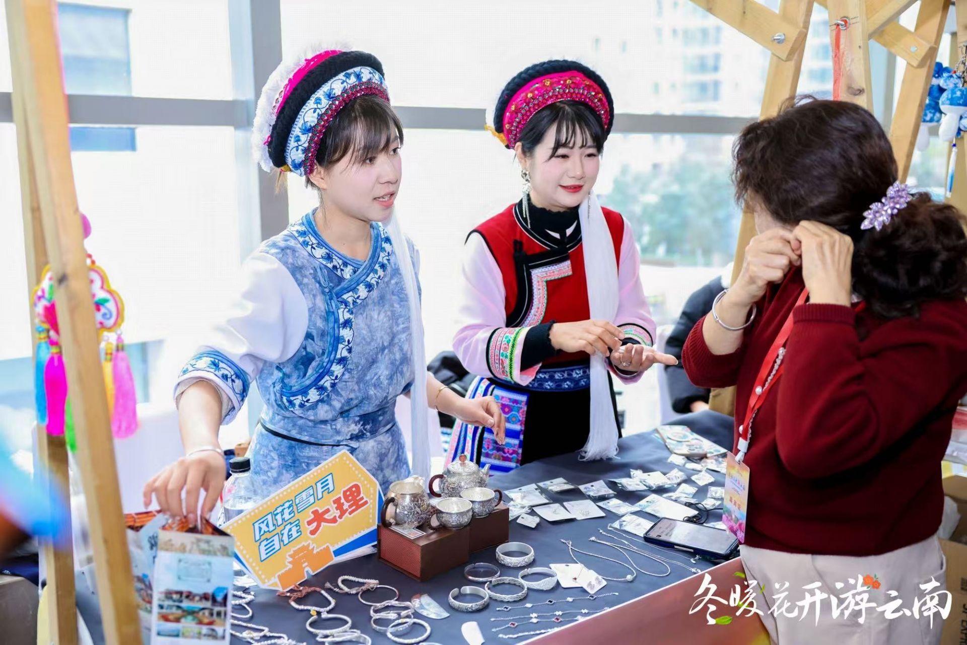 会场外精心打造的云南文旅集市成为一道亮丽风景线,与会嘉宾纷纷驻足,了解云南各州市非遗手工艺品、文创产品,还有银饰、刺绣、文创笔记本……极具民族风情与创意,让与会嘉宾爱不释手,纷纷感叹“嫽扎咧”(陕西方言,意为“非常好”)。