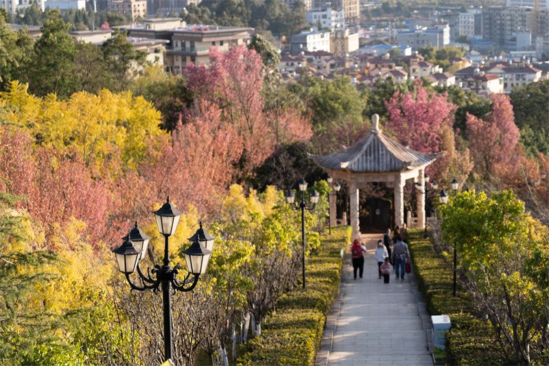 楚雄峨碌公园作为新年登高热门地,不仅有清幽的山林步道,更有浓厚的祈福氛围。沿着规整的登山步道向上攀登,呼吸清新的山林空气,沿途可俯瞰楚雄市区全景,登顶瞬间的开阔感,瞬间扫去一整年的疲惫。