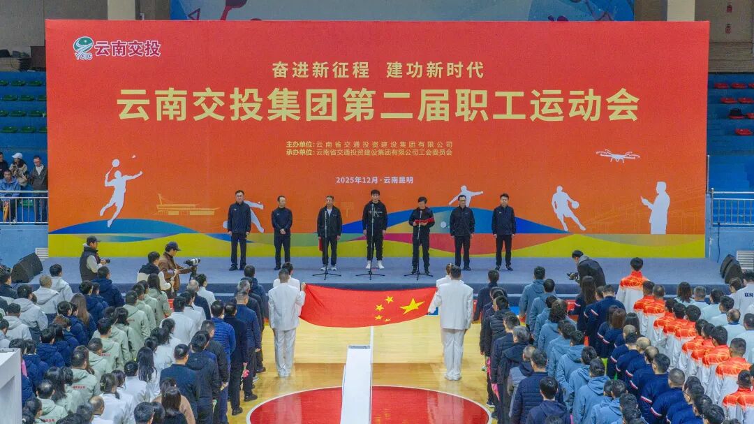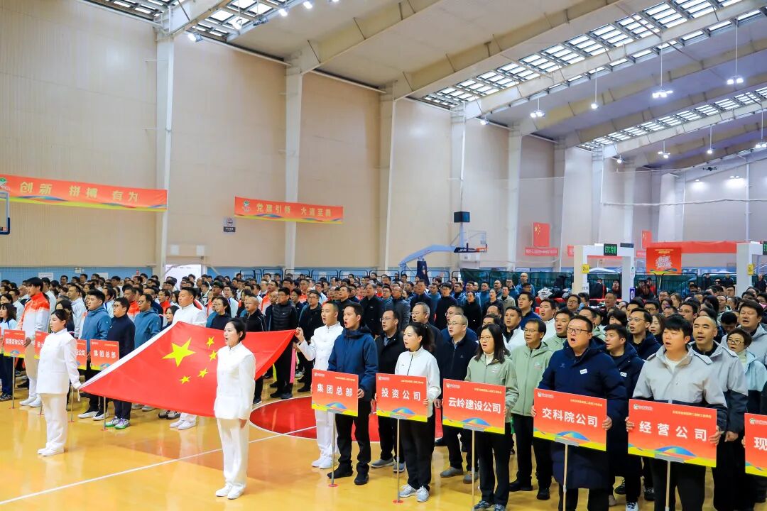 上午9时30分,开幕式在庄严的国歌声中拉开帷幕。现场彩旗飘扬、气氛热烈,全体人员精神抖擞、斗志昂扬,生动展现了云南交投人团结拼搏、奋发向上的时代风采。
