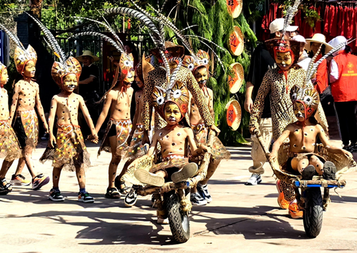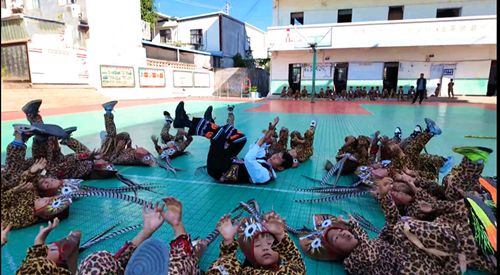 落日余晖铺满云南省双柏县法脿中心学校的操场,一群身披斑斓“虎皮”、头戴威风“虎帽”的孩子,正跟着普老师一招一式跳起古老的彝族“老虎笙”。