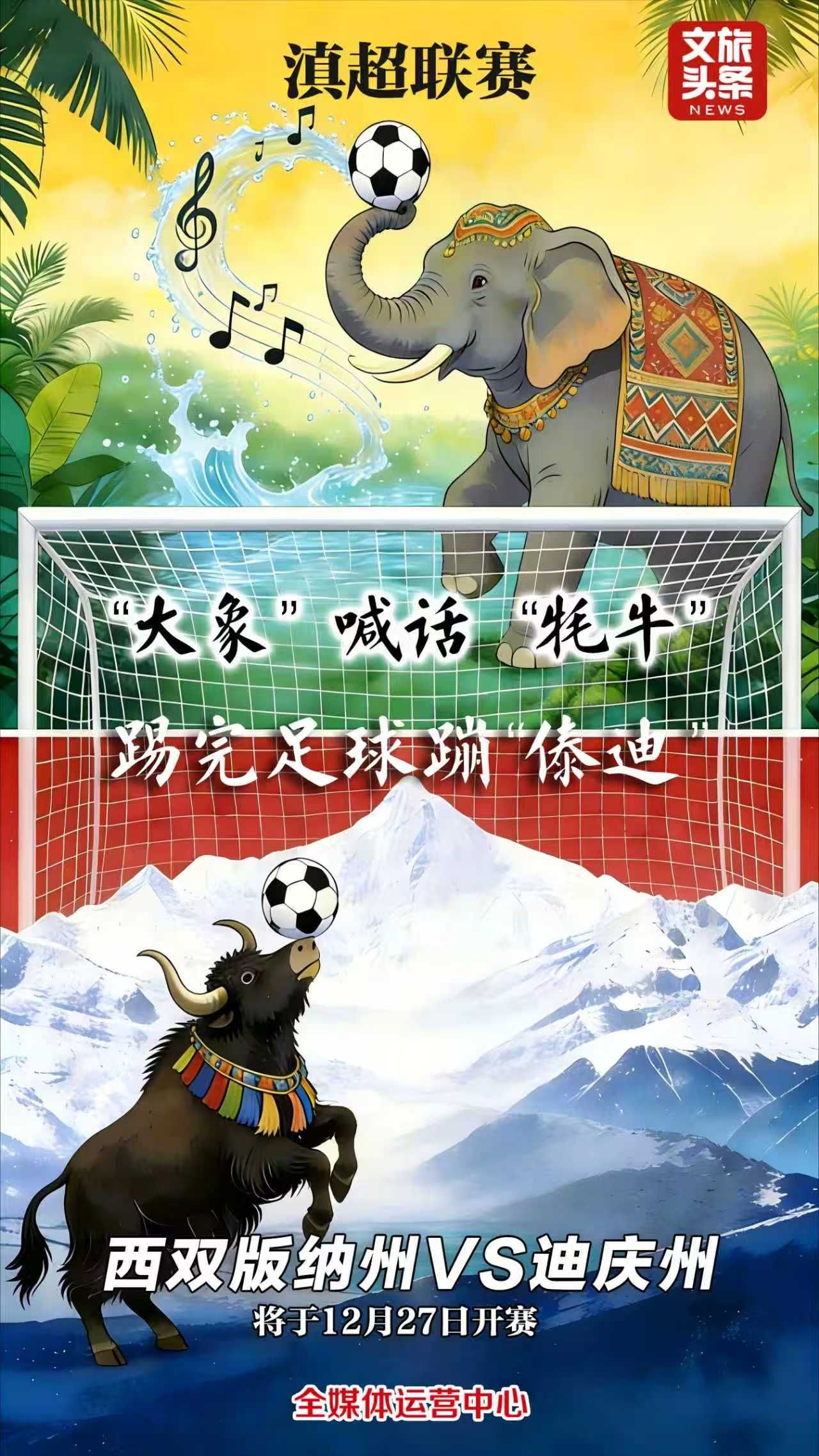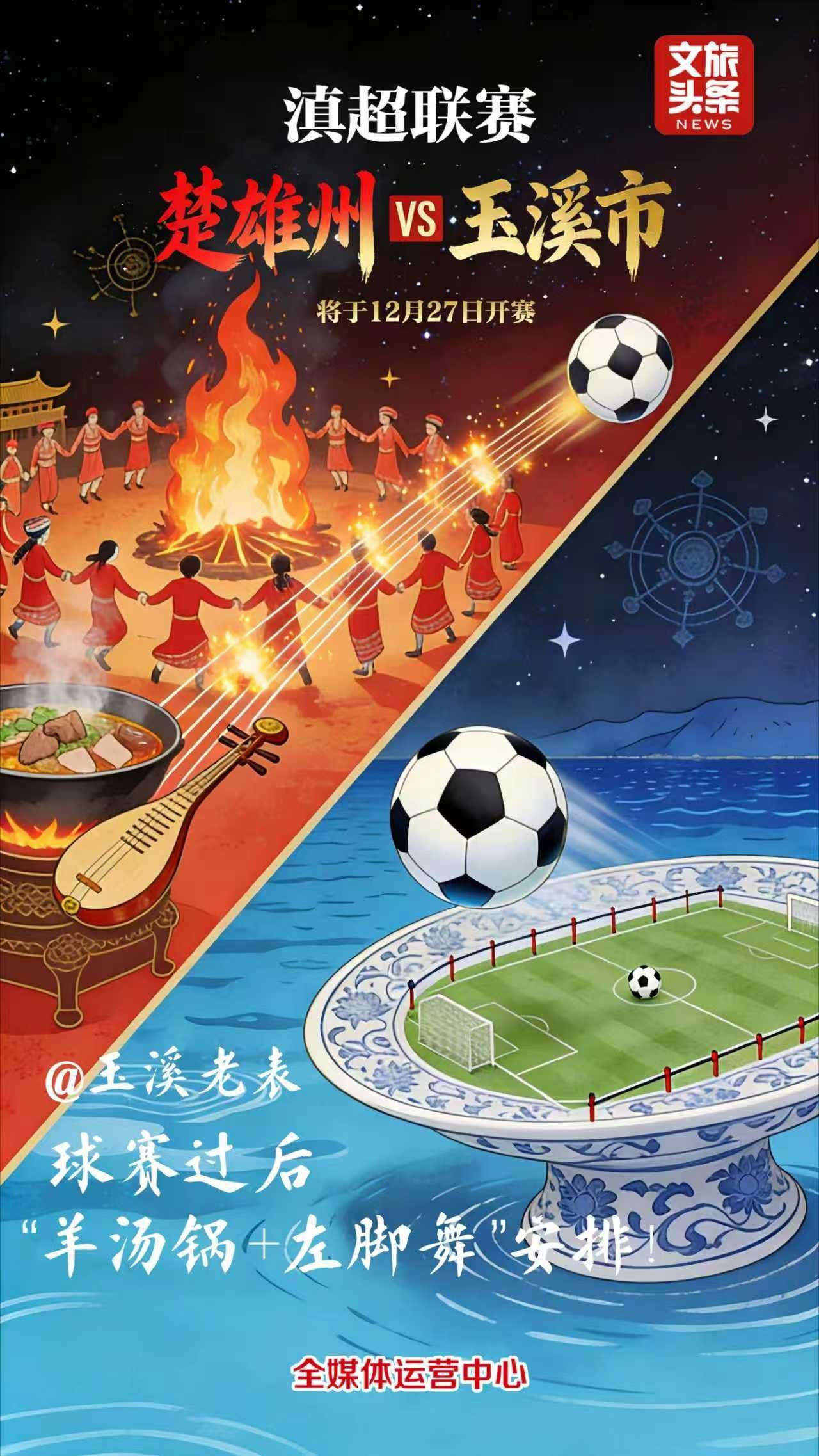 赛事预告|本周六“滇超联赛”又来啦 逛云南山水为热血赛事呐喊 2025-12-27 08:16 文旅头条 0 又到周末了 12月27日 2025/2026富滇银行 云南省城市足球联赛(简称“滇超联赛”) 第二轮第二阶段燃情开踢 逛云南山水 为热血赛事呐喊 这趟旅程才板扎 文旅头条融媒体记者 李亚 文 李文明 设计 编辑 童文文 校对 杨燕婷 审核 华芳