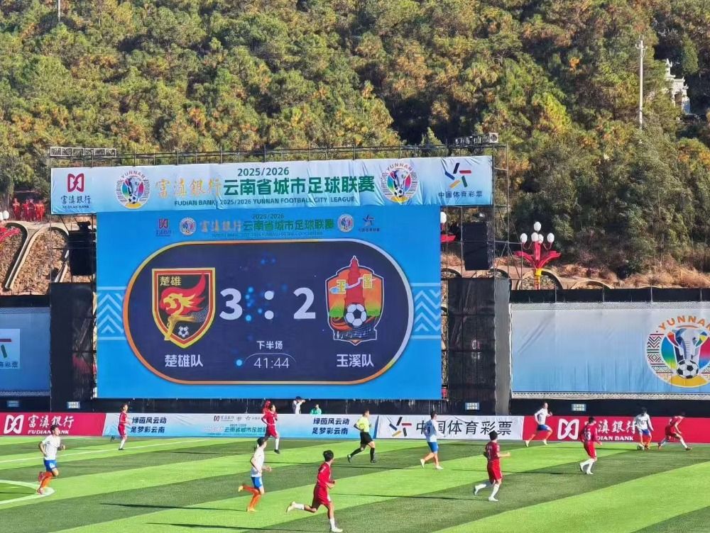 12月27日,万众瞩目的“滇超联赛”第二轮,楚雄队与玉溪队的比赛在楚雄天立学校足球场激情开赛。经过90分钟的激烈角逐,楚雄队最终以3:2的比分战胜对手,赢得胜利!