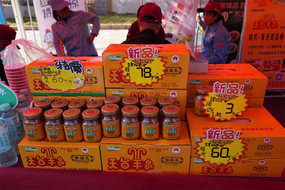 精美的彝绣文创品吸引了众多目光,一针一线间传承着千年的彝族文化;牟定腐乳、云泉豆瓣酱等特色食品摊位前排起了长队,地道的楚雄味道令人回味无穷;哀牢山古树茶香气四溢,为微凉的冬日午后增添了一抹暖意。