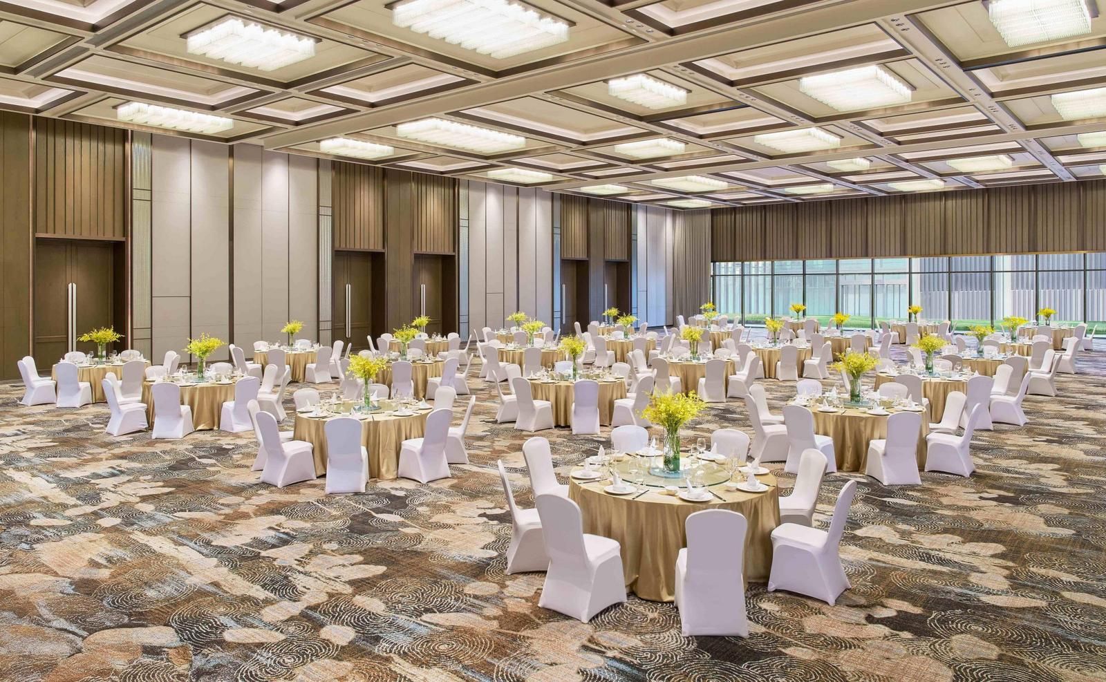 ·自然采光融入宴会空间,落地窗点缀白龙潭湖景