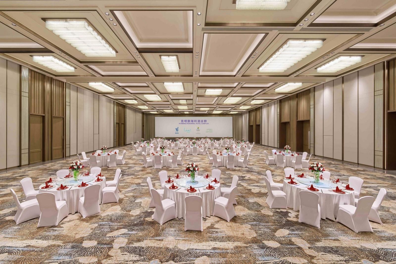 昆明鹏瑞利酒店群会议中心会议采用三层立体布局与灵活组合设计,可从容承接百人会议至千人级大型活动,满足多会场并行与多场景切换需求。适配各行业年会盛典、品牌发布、经销商会、企业培训、峰会论坛及“会+展+宴”一体化项目。