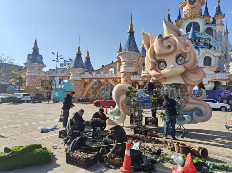 据介绍,这一特色装置由斗南街道办事处联合仟磬文创,以“文化+生态+艺术”的创新思路,共同策划打造。装置主体采用景天科等十余种多肉植物,通过色彩与形态的精心排布,在马背呈现绚丽的“钱花”图案,既呼应“马上有钱”传统吉兆,又展现植物艺术的现代美感。创作团队负责人表示:“多肉植物象征坚韧生命力,与新春万象更新的主题高度契合,我们期待通过这种形式,让环保理念融入节庆文化。”