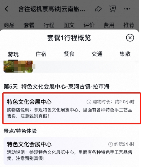 果然,文旅君发现该行程中存在3处购物安排,共5小时。