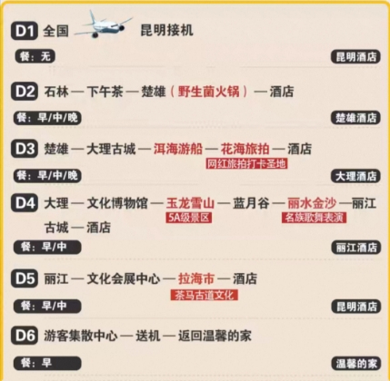 2025年12月31日,云南省文化和旅游厅综合执法监督局联合文旅头条新闻网游舆大数据中心监测到:含往返机票高铁|云南旅游昆明大理丽江6天5晚跟团游香格里拉旅行