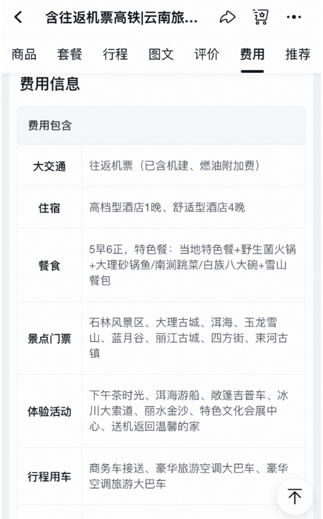 此行程包含大交通、住宿、餐饮、景区门票、云南省内交通等费用