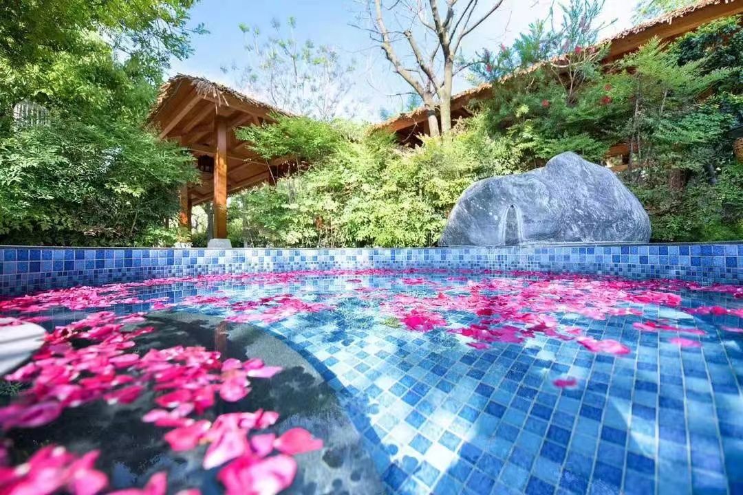 映月潭温泉:深藏于城市近郊的宝藏之地。源自地下2000多米的天然泉水,恒温51℃,富含氟、镭等多种有益矿物质。40余个风格各异的泡池掩映于葱郁绿植之间,私密雅致。部分客房更设有专属泡池,晨闻鸟鸣,夜观星河,尽享惬意时光。