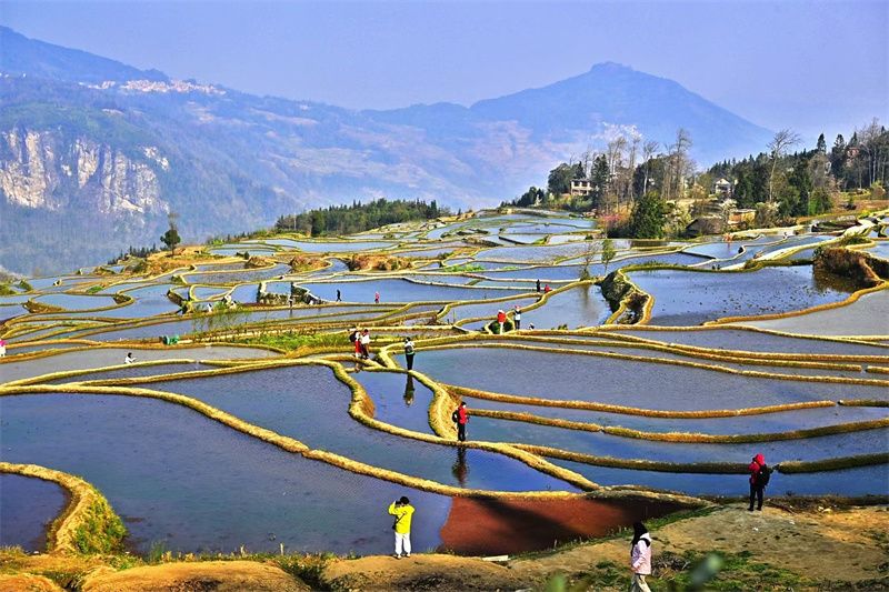 元阳县的梯田盛景与民俗风情交相辉映。元旦期间,元阳哈尼梯田迎来最佳观赏期,来自全国各地的游客来到世界文化遗产哈尼梯田核心区,欣赏这一世界级美景。多依树的日出、坝达的日落与爱春的蓝色梯田吸引摄影爱好者驻足,世界最佳旅游乡村阿者科的梯田徒步、民俗体验热度高涨,梯田博物馆内的农耕智慧展示,让游客在赏景之余读懂“三遗产”的生态密码。