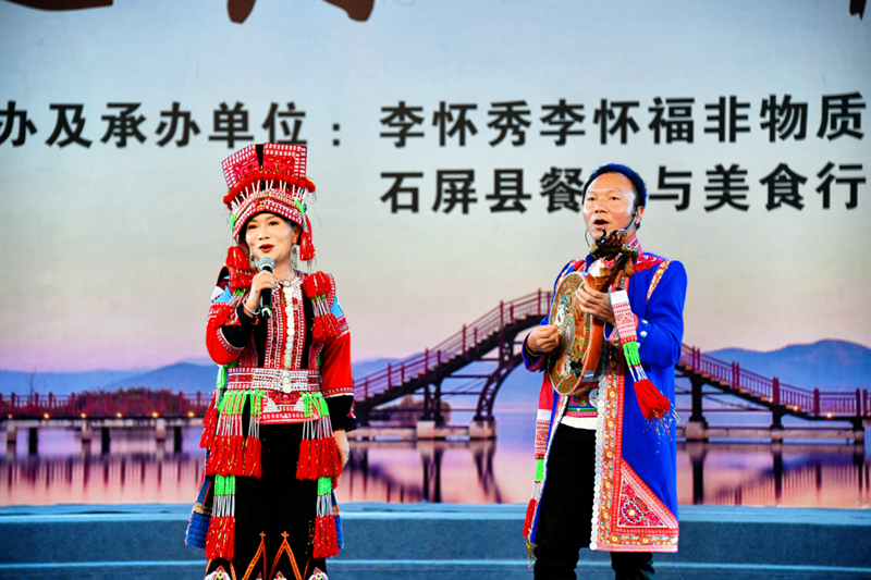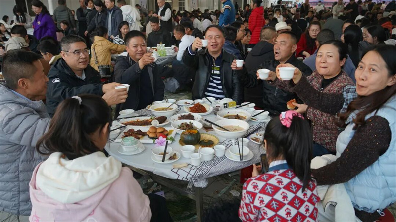 石屏县的非遗盛宴与美食狂欢独具韵味。1月1日举办的“石屏之约·彝家有宴”百桌彝家宴,14道融合石屏饮食文化的彝家菜肴摆满了餐桌,展现的不只是石屏人民热情好客,也是对新年最朴实、最丰盛的祝福。席间海菜腔、烟盒舞等非遗歌舞轮番上演,宴后篝火打跳让宾主尽欢。米轨小火车开启新旅途,火车上演员们载歌载舞带领乘客们开启“新年第一程”。古城里的有礼集市上,文创、美食、表演吸引了众多游客围观,在升腾的“烟火气”中感受石屏本地特色与新年喜庆氛围。