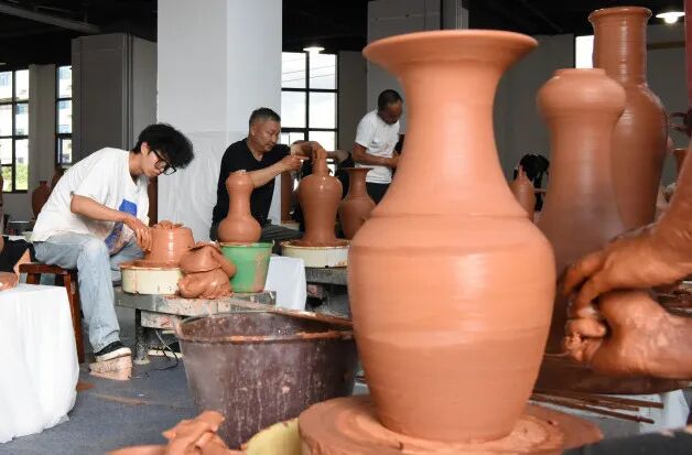 建水紫陶制作工静坐于辘轳前,双手抚过温润的泥土,每一次旋转皆是对千年技艺的致敬。陶坯在掌间成形,釉色于窑火中流转,他们以专注延续着“陶乡”的文脉,让传统在当代焕发新生。