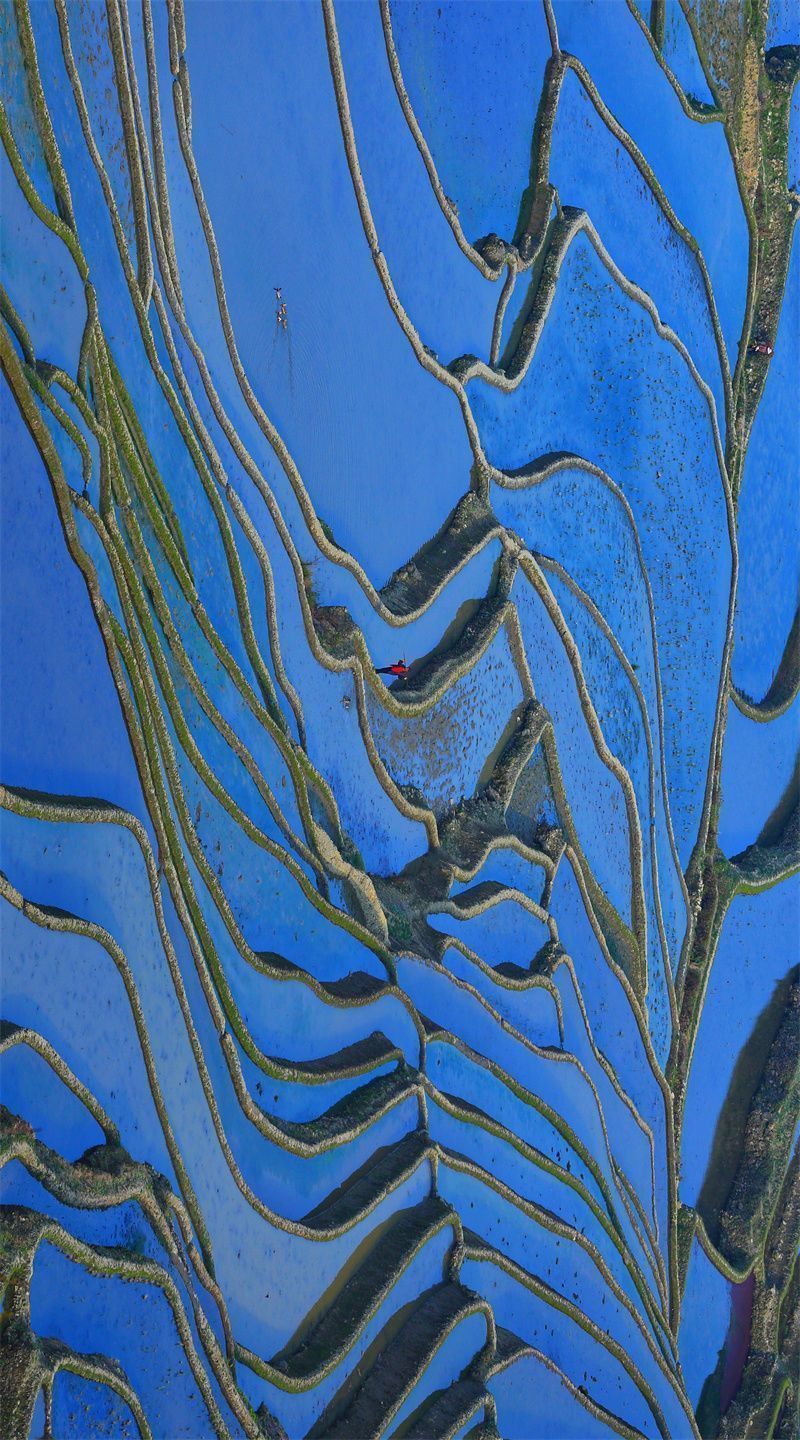 冬春季节是哈尼梯田的最佳观赏期,此时波光粼粼的梯田,宛如一面镜子,能将世间万物倒映水中,如梦如幻。