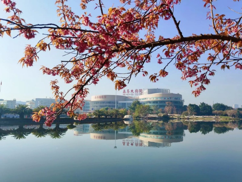 樱树与城市景观巧妙融合,形成现代与自然交织的画面。出水口处的樱树临水而立,倒影如画;聂耳音乐广场周边花树成排,常有市民在此休憩、演奏乐器,樱花之下更添文艺气息。适合午后闲坐、散步,或捕捉街头生活中与樱花相映的温馨场景。