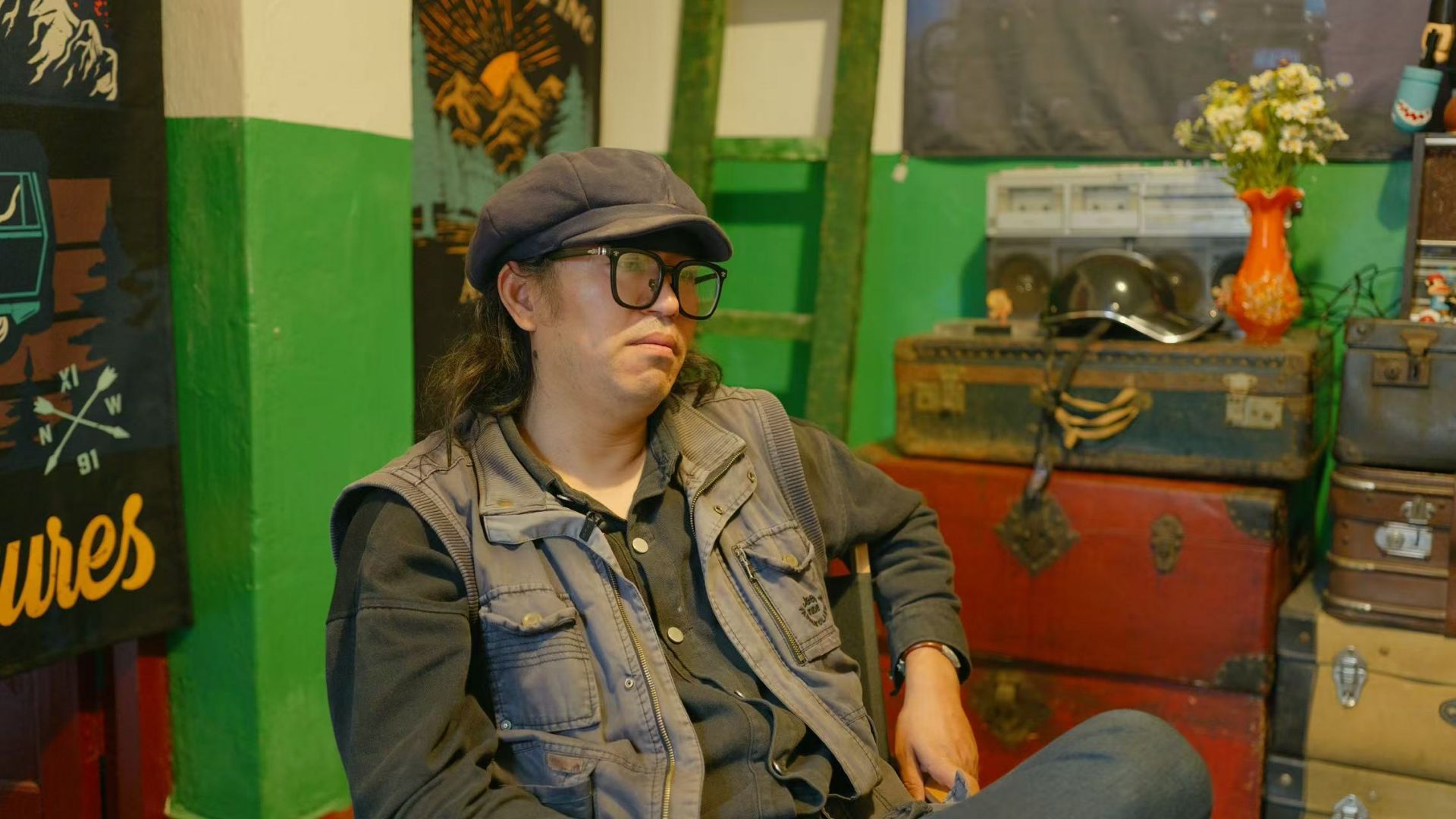 来自江苏南通的庞稀强,是一名资深的行者。露营、徒步、机车、马拉松、复古收藏……他几乎尝试过所有关于“玩”的可能。一次前往西藏的途中,他在社交媒体上刷到绿汁镇的“录音机咖啡店”,复古而安宁的画面瞬间击中了他。于是,他绕道而来,没想到一来便不想再走。