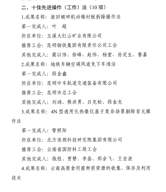 近日,云南省总工会公布云南省第六届职工优秀技术创新成果交流活动补助项目名单。红河州有两项技术创新成果入选。