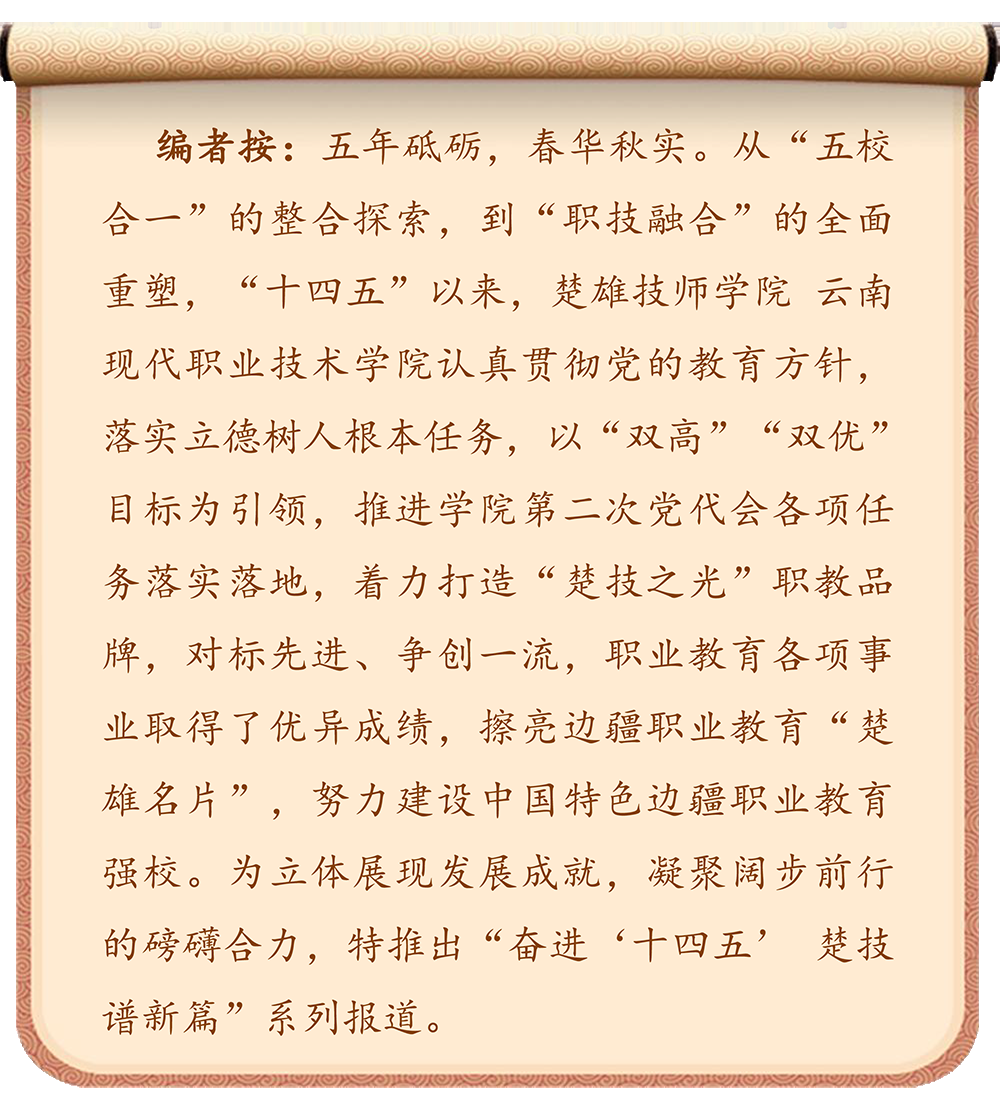 “十四五”期间,特别是近三年以来,楚雄技师学院 云南现代职业技术学院马克思主义学院在学院党委领导下,始终以习近平新时代中国特色社会主义思想为指导,牢牢把握立德树人根本任务,立足职业教育特色,深耕思政教育改革创新,通过党建领航、教学革新、科研赋能、协同融合等多维发力,构建起全方位、立体化的思政育人体系,为培育德技并修的高素质技能人才筑牢思想根基,书写了职业院校思政教育高质量发展的生动答卷。