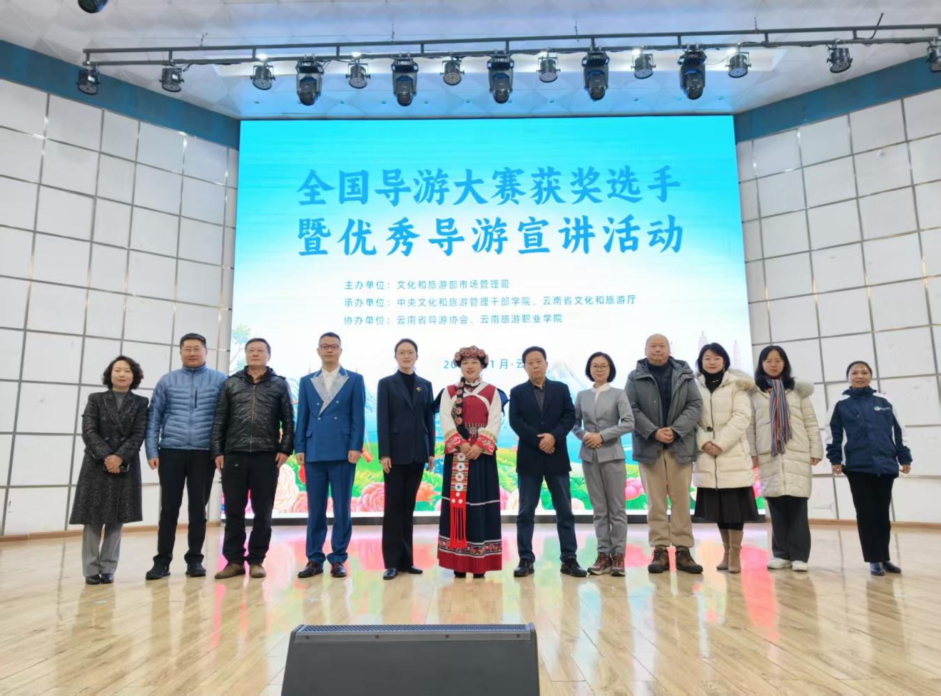1月8日,由文化和旅游部市场管理司主办,中央文化和旅游管理干部学院、云南省文化和旅游厅承办的“助力个人成长·树牢职业自信——全国导游大赛获奖选手暨优秀导游宣讲活动”昆明站顺利举办。