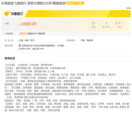 该旅游产品广告链接:云南旅游飞猪旅行 昆明大理丽江6天5晚跟团游
