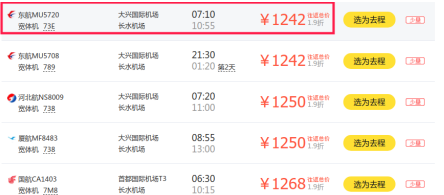 从行程看,北京至昆明出发时查询的往返机票价格最低为1242元。