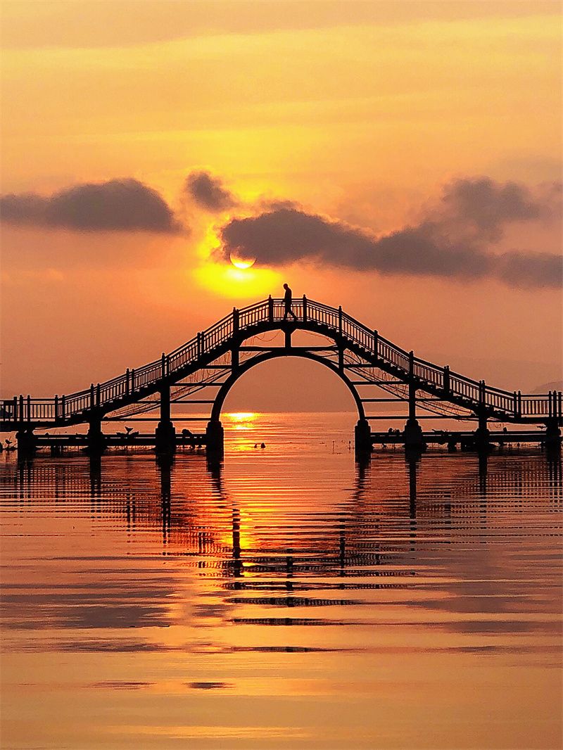 在石屏异龙湖看一场绝美落日,看残阳如血,水天一色。