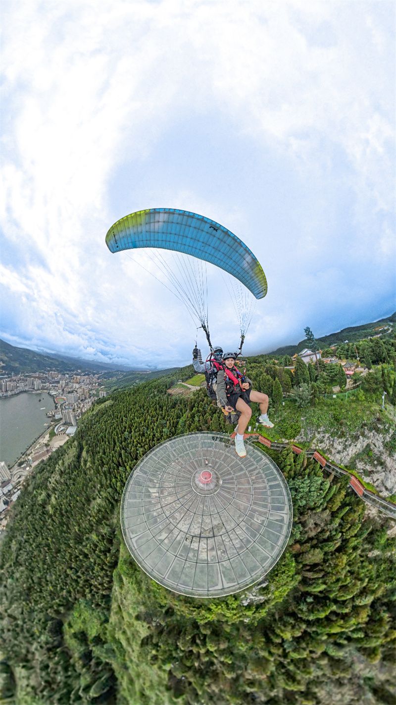 从个旧阴山上,乘滑翔伞而下,在速度与激情里俯瞰锡都风景。