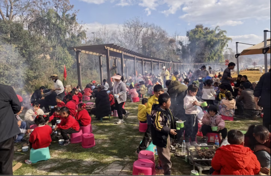 为深入贯彻《永仁县未成年人关爱服务三年行动方案》,推进“幸福里·朝阳社区”工作协调机制落地,1月6日,永仁县宜就中心小学联合县教育局机关工会,在宜就黑龙潭民族团结文化广场及慕阳公司生态草莓园,举办“寻味传统 乐享农耕——我们的‘团圆饭’”元旦亲子研学活动。活动以传统“杀猪饭”习俗为载体,融合文化传承、劳动教育、亲子互动与思政教育,全校师生、家长代表及县教育局、宜就镇党委政府相关人员参与,“幸福里·朝阳社区”工作协调机制办公室全程见证家校社协同育人实践。