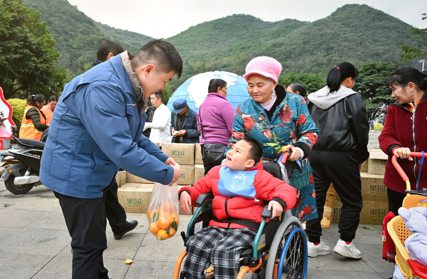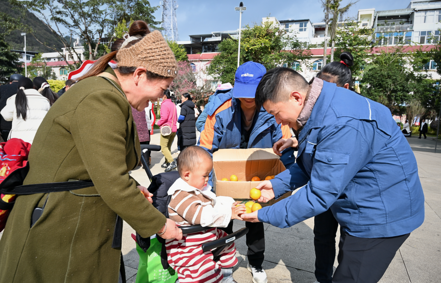 而在北回广场开展的“关爱一老一小”活动中,柑橘成为传递温情的纽带。除了开头那对祖孙,许多社区老人和孩童都收到了这份心意。不少老人拿着柑橘,围坐在一起交流,广场上洋溢着欢声笑语。一位老大爷感慨:“电站建在这儿,电有了,工作机会多了,现在还常想着我们老人孩子,真是暖心。”。