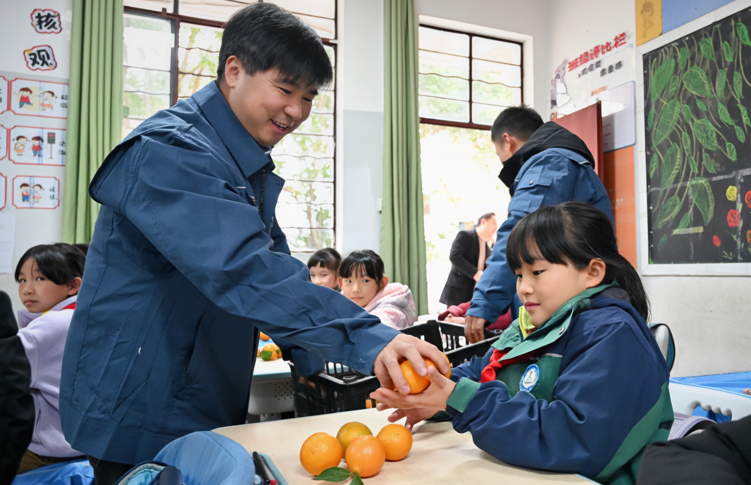 为确保这份“阳光果实”惠及更多群众,电站将柑橘分批送至西畴县多个群体手中,践行“心系群众、回馈社会”的责任担当。在鸡街乡的中小学校园里,孩子们接过甘甜的柑橘,更接过一份关于绿色未来的启蒙。随柑橘一同送达的,还有一场别开生面的“清洁能源知识互动答题”活动。“原来太阳光不仅能让我们暖和,还能变成电!”一名小学生在答题后兴奋地说道。这些活动在青少年心中悄然播下了清洁能源的种子。