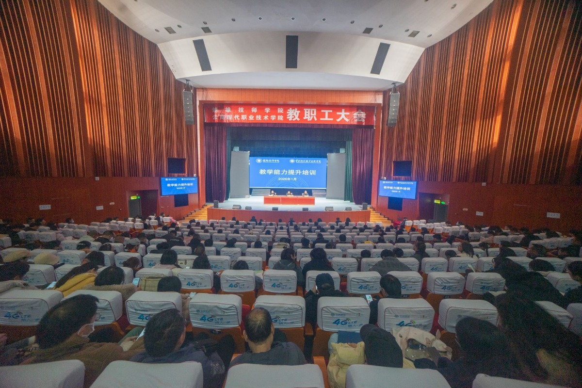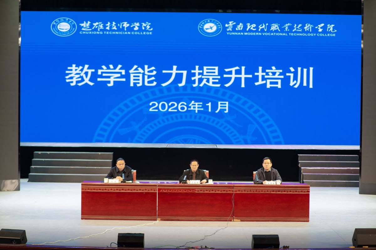 1月13日上午,楚雄技师学院 云南现代职业技术学院2026年教师教学能力提升培训班开班仪式在学院学生会堂举行。学院党委书记王若舟作动员讲话,温州技师学院党委书记范茂盛出席并致辞,党委副书记、院长周刚主持开班仪式。学院党委班子成员、各部门及教学单位负责人、全体教职工共800余人参加开班仪式。