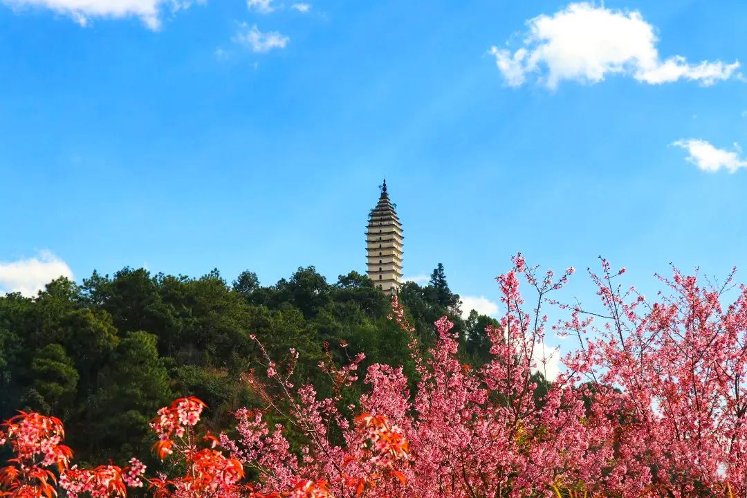 冬日暖阳漫洒,楚雄福塔公园的冬樱已悄然舒展粉白裙摆,花瓣随风轻摇,与古朴福塔相映成趣,织就一幅温润的冬日画卷。步道旁的樱树连成粉色隧道,漫步其间浪漫满怀,福塔入口至塔顶沿途皆是佳景,尤以一层观景平台为甚,既能定格樱花与福塔的同框之美,亦可远眺市区风光。赏樱罢,登塔俯瞰,感受“福泽万家”的文化底蕴,惬意万分。