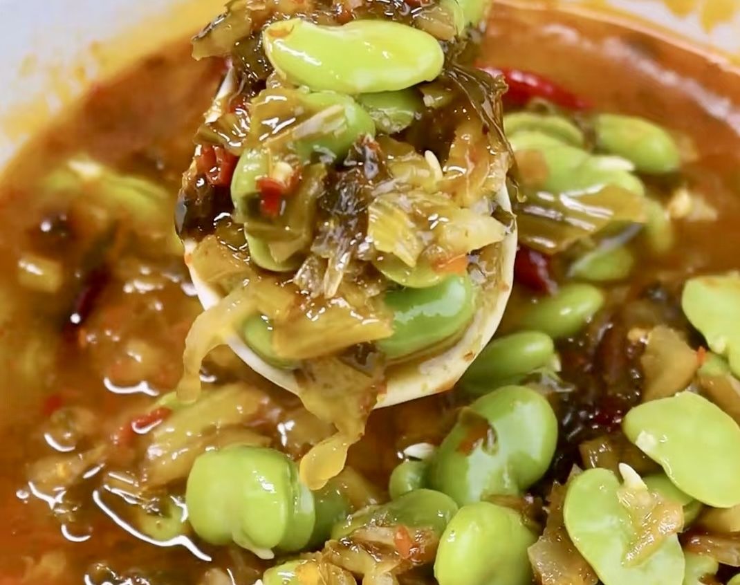 酸菜豆米汤:酸菜经过充分发酵后带着醇厚的酸香,与新鲜的蚕豆米完美融合,鲜甜中带着酸辣,让人回味无穷。